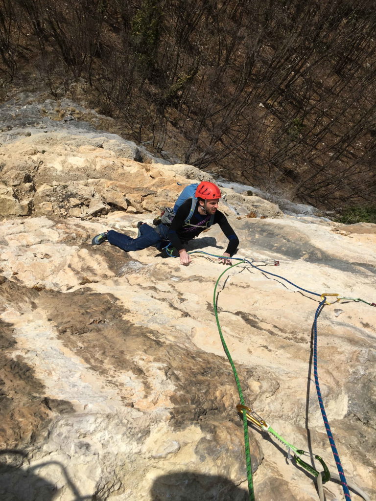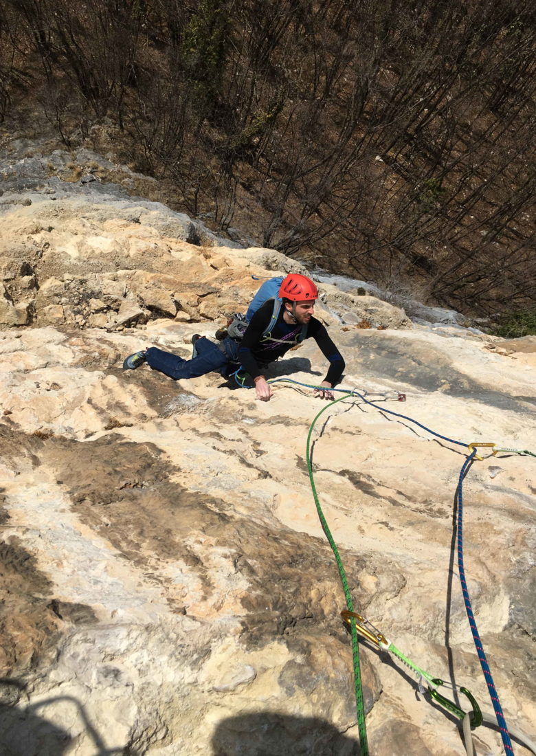 Voglia di roccia e di sole, lo zero termico è previsto a 3800m: la soluzione è andare a scalare su qualche bella parete a Sud per godersi l’anticipo di Primavera e Francesco mi propone Il Richiamo di Penna Bianca sul Sojo Bostel, in Val d’Assa. Non farà caldo come speravamo, anzi sul finale tirerà un venticello da ghiacciare le mani però la via si rivelerà azzeccata, molto bella e dal sapore alpinistico, vuoi per la tipologia di roccia, vuoi per i continui zig zag a cercare i punti deboli della parete tranne che per il quinto ed il decimo tiro, delle vere e proprie mine se saliti in libera (come noi non siamo riusciti a fare). Le protezioni sono ravvicinate, chiodi e clessidre dove la roccia lo permette, piastrine dove invece è compatta. Alle soste si trova sempre uno spit. Per il tracciato della salita, avvicinamento e discesa rimando alla scheda dell’apritore, ma aggiungo qualche nota sui tiri. Vista la vicinanza delle protezioni, spesso piastrine, la valutazione delle difficoltà è in grado sportivo: Placca con un tratto povero di appigli e diedro finale, 5c; Qualche metro in verticale, traverso aereo a sx e poi in diagonale verso destra, 6a+; In verticale su roccia magnifica, 6b+; Verso destra, poi fessurina fisica atomica e traversino a destra sotto un tetto. Sosta in niccha 6b; Movimento fisico ad uscire dalla nicchia (6c) e poi placca gialla. A0 (7a?); Tiro erboso con qualche movimento carino,5b; A destra a prendere un diedro per sostare sopra di questo, 5a; Verso destra e poi per muro giallo entusiasmante, 6a+; Traverso verso destra sotto al tetto e sosta poco dopo l’uscita, 6b; Tiro molto impegnativo se fatto in libera, soprattutto la seconda metà. A0 e A1. Super proposta di Francesco che mi ha fatto scoprire questo luogo silenzioso […]