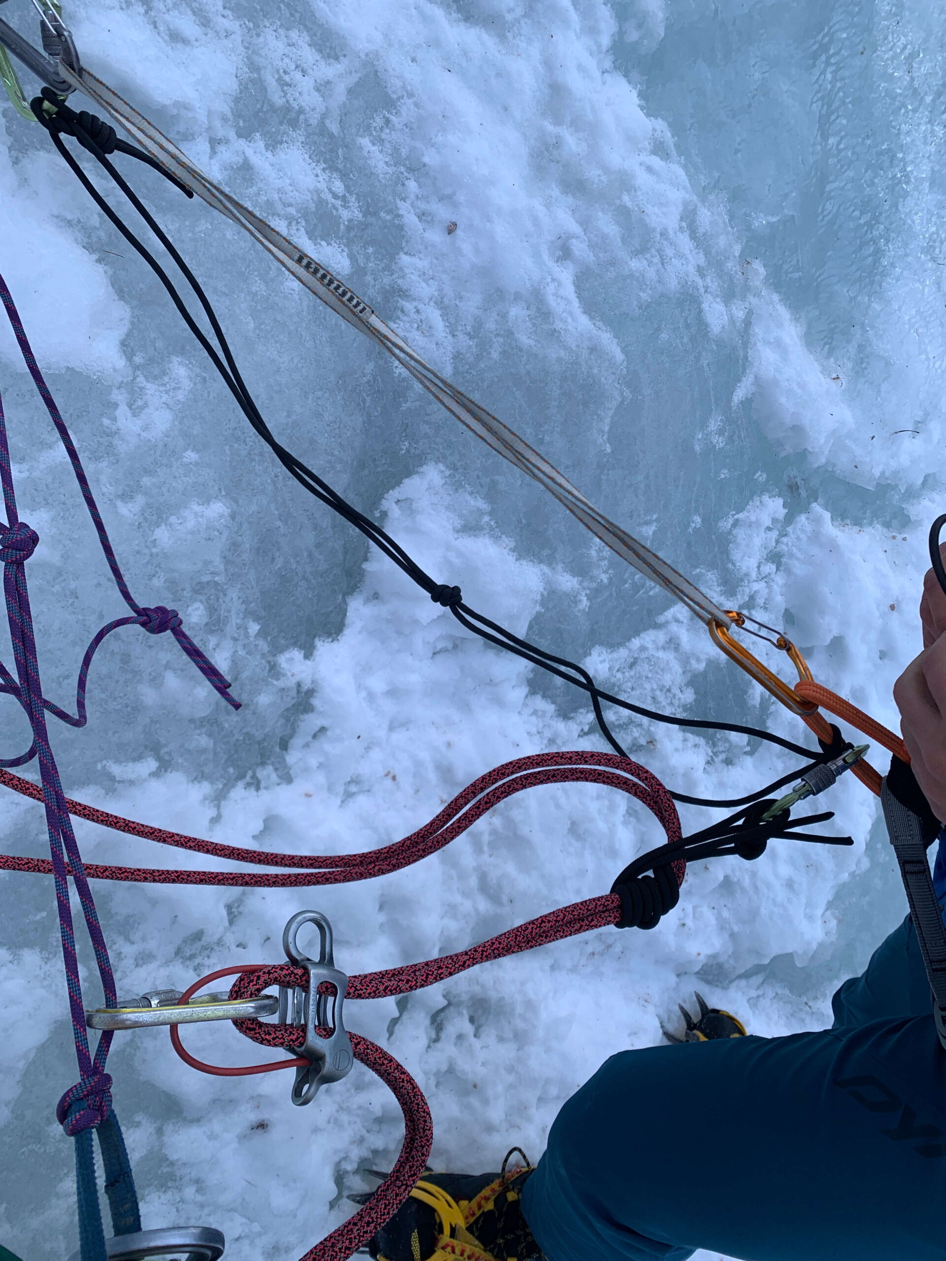 - - Costruzione di ancoraggi e soste su ghiaccio